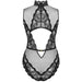 El modelo Sagen es un body confeccionado con un material suave, flexible y resistente al estiramiento. El encaje y la malla de poliamida con una mezcla de elastano se adaptan perfectamente a la forma del cuerpo y no restringen el movimiento. El color negro del modelo es universal y clásicamente elegante, adecuado para cualquier ocasión. Un body transparente quedará bien en el dormitorio y, gracias a las elaboradas aplicaciones de encaje, te hará sentir femenina y elegante incluso sin ropa exterior.